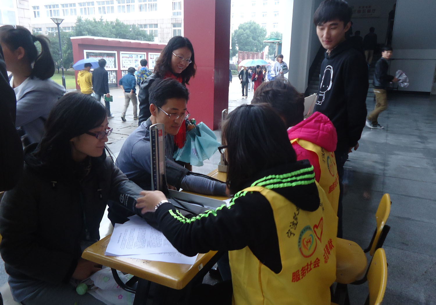 这次活动主要分为三大块。第一块是以应用化工系志愿者们之前做志愿者活动时的拍摄的照片。从照片中不难看出志愿者们认真、仔细地进行志愿者活动。第二块是志愿者们在食堂门口向同学们分发《绿色健康生活从健康血压开始》的宣传单并认真向同学们讲解,让同学们更加了解想要有健康的身体必须拥有绿色的血压。第三块也是最重要的一块,是由志愿者为老师和同学们测量血压。从活动开始到结束,测量血压的队伍就没有断过,排着长长的队伍。在这个队伍中不止有前来测量血压的同学们还有一些老师也排在其中。同学们在检查血压时分别测了舒张压和收缩压。当有位同学提出说:为什么这次他在这儿量的血压和他在医院量的血压不同时,志愿者立即向他解答,因为在不同时段,人的血压是不同的,而且你刚刚吃过饭,所以血压也会比平时高一些。对于志愿者的讲解,同学们表示理解了。