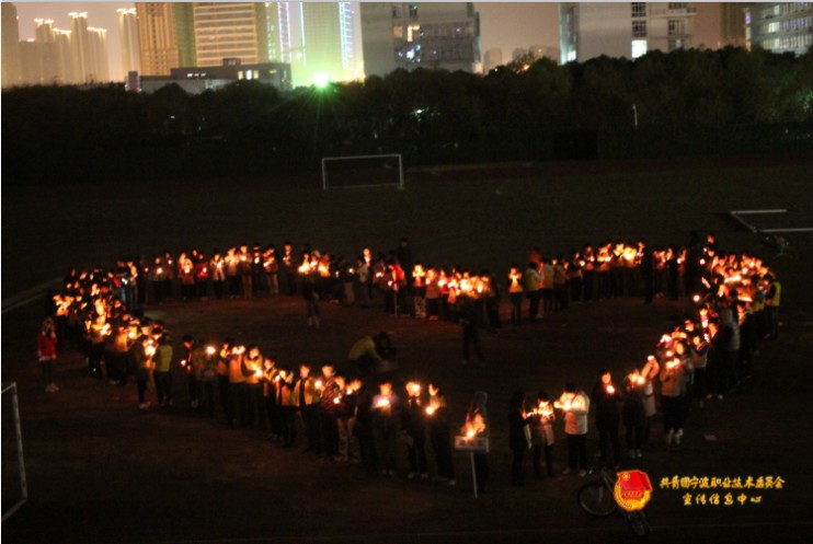晚上八点整,我院8个系的愿者们齐聚一堂。在负责人郑庆灼同学的带领下,他们来到操场,在凛冽的寒风中围成一个似心形又似志愿者手掌的图案站在草坪中央。尽管天气寒冷,但是志愿者们不畏严寒,他们每个人手中捧着一支蜡烛,脸上挂着灿烂的笑容,在主持人王婷婷同学的指挥下,一起点燃了蜡烛。