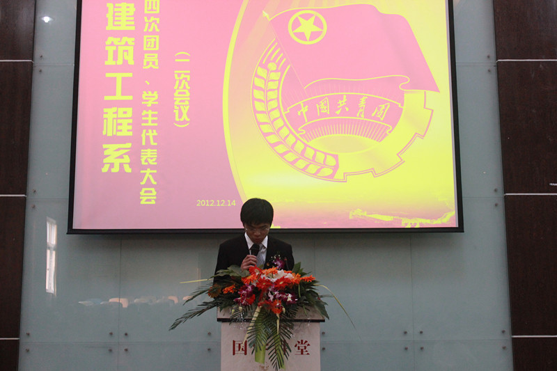 2012年12月13日中午12点30分,建筑工程系在明德楼105教室举行建筑工程系第四届团员学生会代表大会。本次应邀参加的嘉宾有院团委副书记赖敏雅老师建筑工程系党总支书记丁立人老师、系主任车金如、系副主任李晓东老师以及各系党总支书记。