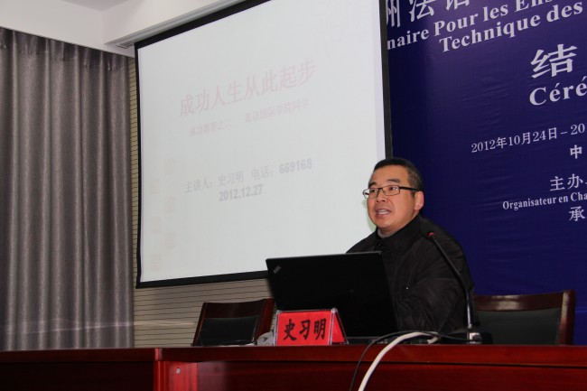 2012年12月27日中午11点40分,宁波职业技术学院国际学院第二期“成功大学”开班仪式在艺术楼106教室举行。宁波职业技术学院党委副书记史习明老师,国际学院党总支副书记裘广宇老师,国际学院分团委书记徐俊杰老师以及团委桑莹老师出席了开班仪式,仪式由桑莹老师主持。