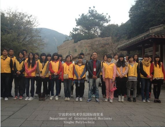 图为:国际商贸系志愿者服务大队九峰山环保行
