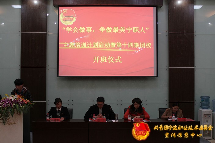 为了增强团学干部的组织性、纪律性、时间观念和全局意识,提高团学干部队伍的凝聚力和整体素质,使团学干部起到骨干模范带头作用。3月14日下午,在明德楼105教室隆重举行了“学会做事争做最美宁职人”主题培训计划暨第十四期团校开班仪式。出席本次团校开班仪式的领导有院党委宣传部部长李颖老师,院团委书记励宁老师,院团委副书记赖敏雅老师,十四期团校班主任杜江南同学,以及各系的团委书记。
