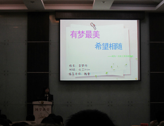2013年4月15日晚于明德楼105教室,应用化工系组织举办了职业生涯规划演讲选拔赛。此次比赛的目的是选拔出能代表应用化工系参加院里组织比赛,并更进一步参加省里比赛的优秀同学。