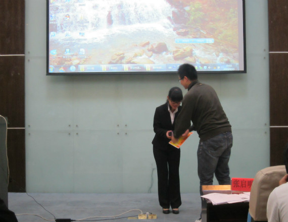 图为:魏雷老师为职业生涯规划胜出者颁奖