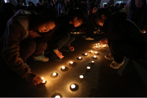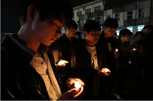 4月22号晚7点50分,由宁职院学生会组织的祈福雅安活动在学院思源广场举行,一千余名各系院学生代表参加了活动。