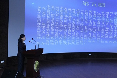 首届辅导员职业技能竞赛由两个部分组成:第一是基础知识部分,包括基础知识测试及微博写作;第二是案例分析部分。全体辅导员参加了第一部分的比赛,前十名的辅导员进入了第二部分的案例分析竞赛阶段。在情景案例环节中,辅导员根据现场抽取的工作案例,依据相关规定,运用理论积累和经验做法从案例背景、问题关键点、解决思路、实施办法、经验启示等方面进行了分析解读。