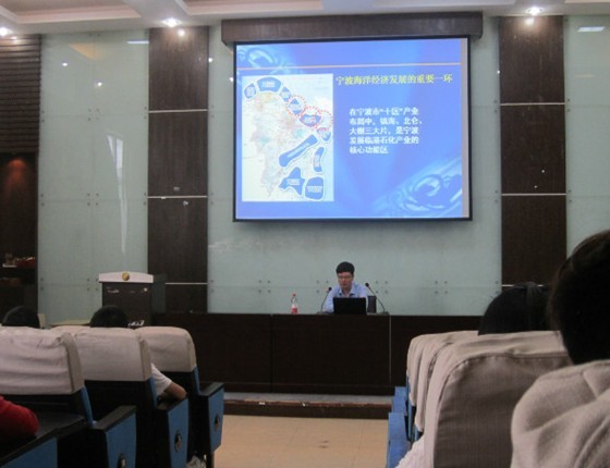 图为:金知微局长为宁波职业技术学院应用化工系进行讲座