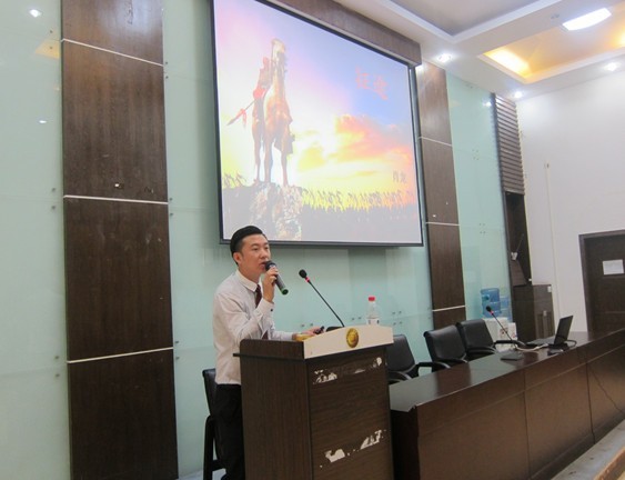图为:肖龙学长在做企业家演讲