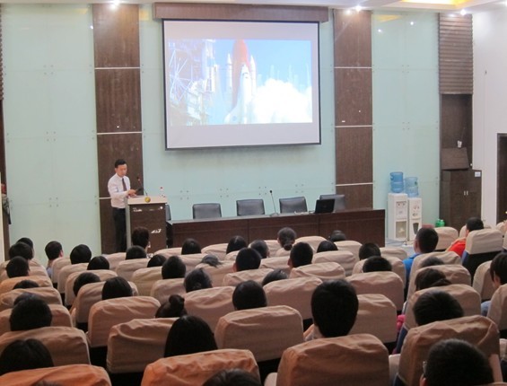 伊始,肖龙学长便介绍了本次讲座的主题是“征途”,一张人山人海的招聘会照片震撼了每一个在场学生的心灵。肖龙学长从“你”、“机遇”、“平台”、“舞台”四大方面为大家讲解。什么是你,你应该具备什么?他从性格、心态、人生价值观、仪表仪态、言行举止、常识、知识、见识等方面,用一张漂亮的简历为大家讲述了“你”存在的价值与意义;又以个人的亲身经历为大家讲解了什么是机遇,机遇的重要性以及如何去把握机遇。