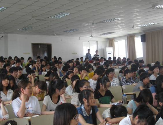 图为:同学认真的听讲座