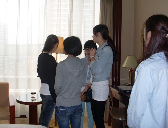 由于之前酒店负责人来我校做过宣传,所以大家对凯利大酒店的情况也有些许了解。今天,在凯利大酒店的唐经理的带领下,10多位学生们更为仔细的了解到了酒店的概况负责人带领大家分别参观了员工宿舍,单人间,标准房,餐厅,细节讲述了每个房间的基本设施,同时也介绍了整个酒店的概况。