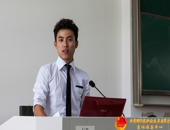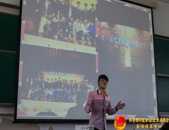 比赛现场,生物3110孙志康同学有条不紊的展示了在学习生活历程里所遭遇的困难与成就,他自豪的证明自己有信念、有目标、有冲劲、有信心成为宁职最美青年,做宁职最好的名片。随后设备3122潘伟刚、应英3111李莎、乐造3110丁丽文等同学也用PPT分享了心路与大学路,表达了成为最美青年的决心。