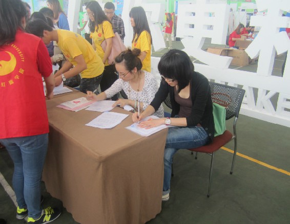 图为:志愿者洽谈会很多企业到场