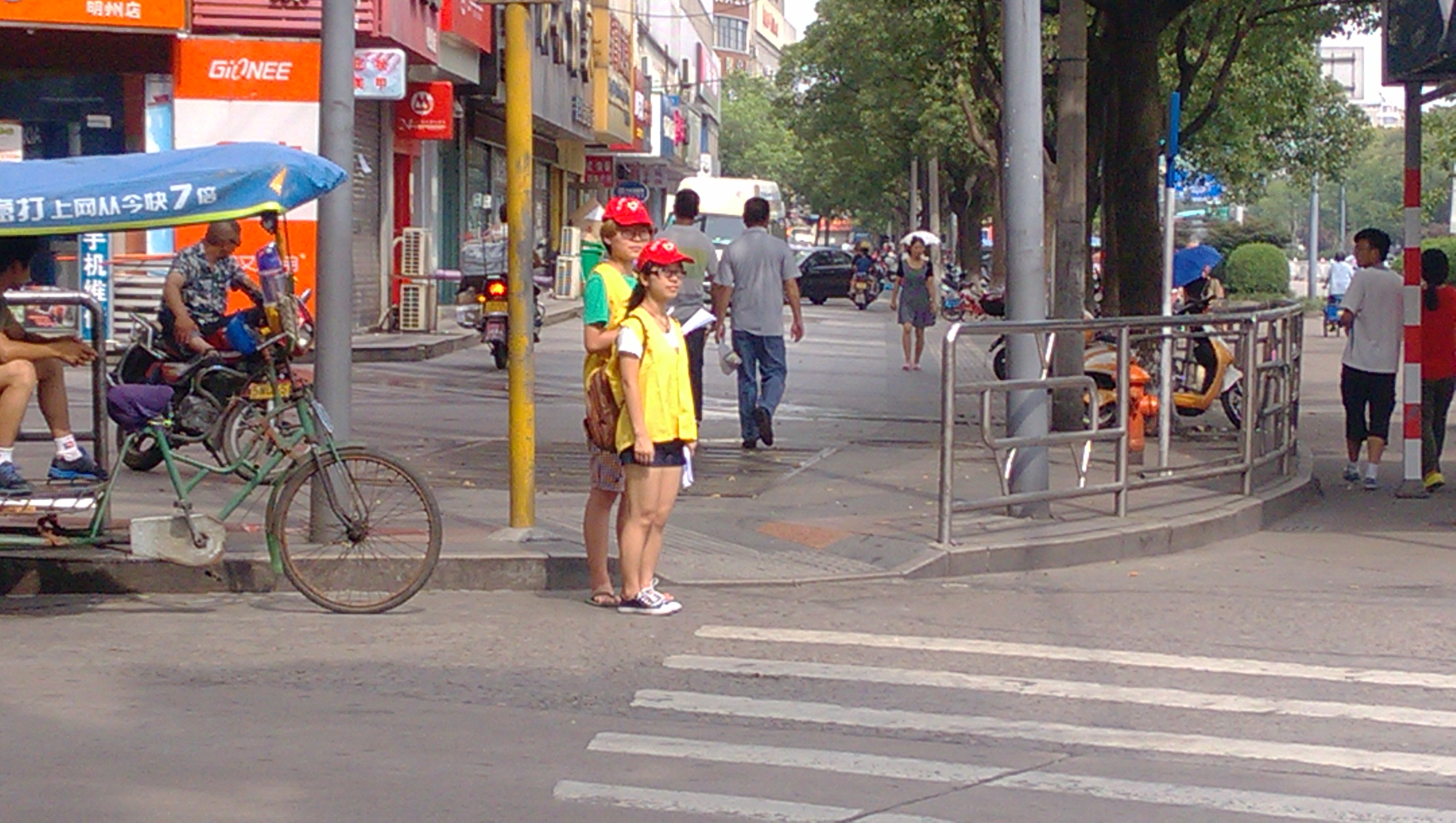 图为:同学们正在马路发放问卷 为了让大家认识到人们的过马路习惯,以及让大家了解到正确过马路的重要性,宁波职业技术学院工商管理系学生会组织了对北仑区各人流密集区域的问卷调查,进行实地数据采集,分析“中国式过马路”这一现象引发的一系列问题。