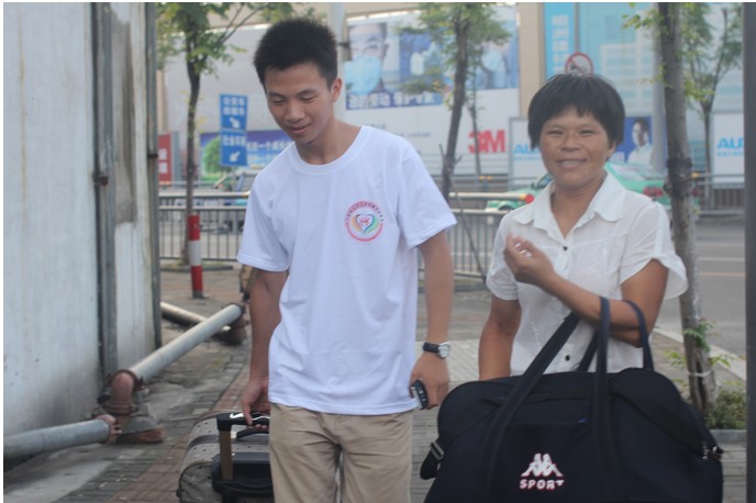 “叮铃铃!叮铃铃!”“喂,您好。”“您好,学长。我,我是前来报道的新生,我快到火车站了,……”“嗯,好的,我马上过来接你吧!”在接到电话后,志愿者小何便飞奔来到火车站出口,将迎新的牌子高高举起,不停打量着从身边经过的每一位旅客,直到人群渐稀,一个瘦弱的女生提着大包小包从火车站缓缓地走出来,怯弱地四处张望。简短招呼后,小何二话不说,将学妹的行李扛起,并呼唤身边的同学过来帮忙……有两位来自新疆的同学在车站丢失了行李,志愿者们四处咨询,几经周折,帮助他们找到了行李。这样的小事,不胜枚举,“让新同学顺利到校”,是这些志愿者们最朴素的想法。