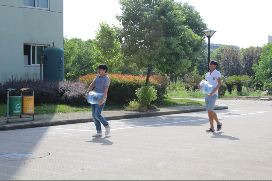 班助们辛苦地抬水