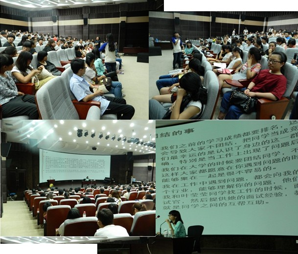 9月24日,服务外包学院全体大一新生在西校区环幕报告厅参加了主题为“携手优秀毕业生 共促新生成长”的交流会,此次交流会由团委林瑾瑾老师主持。交流会伊始,林老师向大家介绍了本次到会的嘉宾,有优秀毕业生与在读大三优秀学生。他们用自己的亲身经历与学习生活感受感染着在座的学弟学妹们,并告诫他们:学习与为人应当充满爱心、认同团体、无私奉献、不自私自利、主动做事与积极进取。