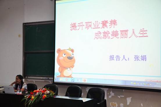 2013年9月25日晚,在明德楼503阶梯教室,国际商贸系请来了全国劳动模范张娟女士为国贸系新生做励志演讲,为同学们提供了丰富的精神食粮。