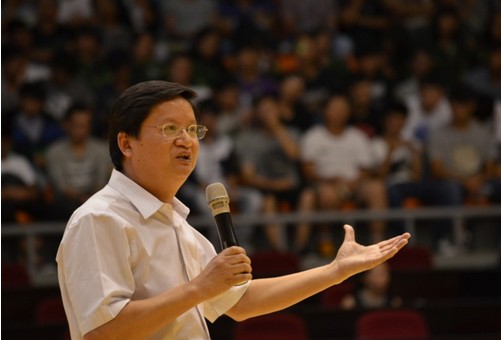 学生们席地而坐围绕在篮球场周围,认真聆听苏书记的讲话。苏书记介绍了学院概况,从区域优势到校园布局,从校训校风到校园文化,从师资力量到特色办学……让“和而不同”的校风、“勤、信、实”的校训和“创业、创新、创优”的学院精神深深刻在每个学生的脑海,“让宁职院的学生成为企业的首选”这一办学目标,也成为学生们大学三年个人成长的目标。他以“苹果、诺基亚、三星公司”的案例告诫同学们社会竞争的残酷现实,只有不断创新才能使自己立于不败之地;并建议大学生们充分利用课余时间,多泡泡图书馆,来丰富知识与内涵。