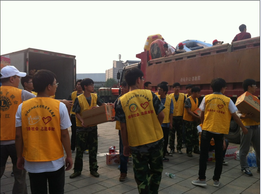 今年23号台风“菲特”重创浙江,其中宁波余姚市为受灾最为严重的地区之一,70%以上城区被淹,全市83万人民受灾,不少群众被困家中,急需物资。天灾无情,人间有爱。10月11日下午1点,海天学院100名志愿者在海天学院党委副书记王灵玲老师的组织下迅速集合,院党委副书记邵坚钢老师做发布了动员讲话,随后,在校团委书记励宁老师与海天学院团委邵敏老师的带领下,志愿者们整装待发,奔赴余姚现场抗洪救灾。