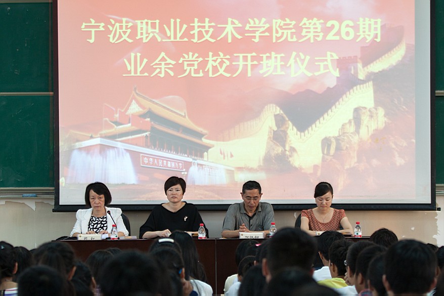 2013年10月11日,在我院精技楼503教室举行了宁职院第二十六期业余党校开班仪式。院党委副书记邵坚钢老师、院党委组织部周红老师、学工部部长张定华老师以及校团委副书记赖敏雅老师出席了本次仪式。