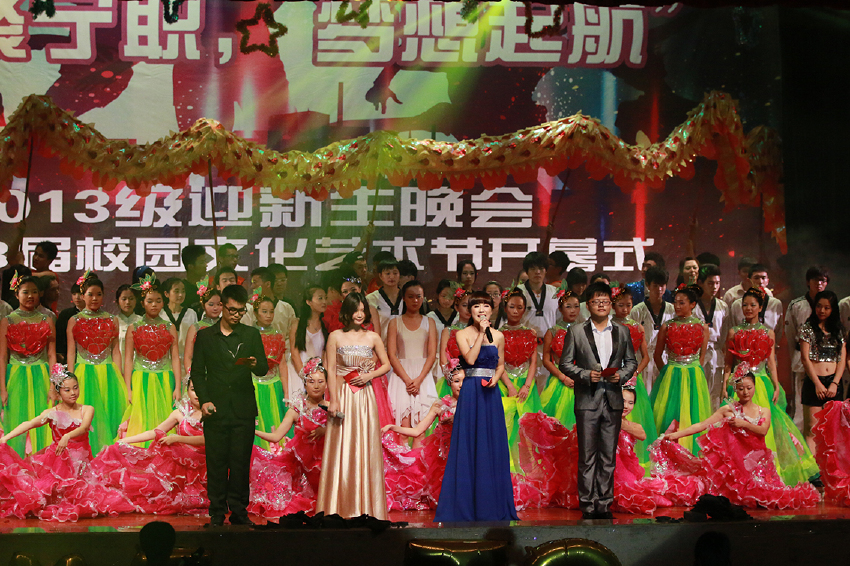 为迎接2013级新生的到来,展现宁职学子的风采,近日,由我院校团委主办,校学生会文娱部承办的“相聚宁职,梦想起航”——2013级迎新晚会暨13届大学生校园文化艺术节开幕式在大剧院隆重举行。学院党委副书记邵坚钢,应用化工系党总支书记徐帆,工商管理系党总支副书记沃意琳,国际学院党总支副书记裘广宇,海天学院党总支副书记王灵玲,校团委书记励宁以及各分团委书记、辅导员出席了本次晚会。