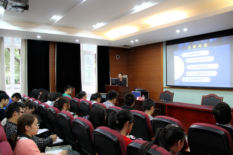 2013年10月17日,在国际学院102会议厅开展了以《大学生社会实践调研》为标题的“博笃”人才学院课程,此次课程是由人文社科部思政教研室的周碧蓉老师担任主讲人。课程伊始,周老师讲到:“社会实践是对自己的一个教育,作为青年干部,青年骨干需具备社会调研的能力,学校学习的东西和社会上的东西是有很大的区别的,社会实践能开拓自己的视野,自身的生活、做事方式能逐渐在学习中有很大的改善。”此次课程分为四个部分,老师分别从社会调研的概念、社会调研的目的、社会调研的程序、社会调研的具体框架来分布展现的。