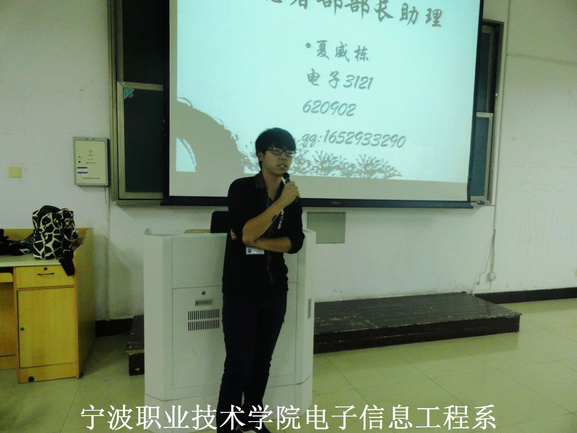 图为:志愿者部部长助理作自我介绍