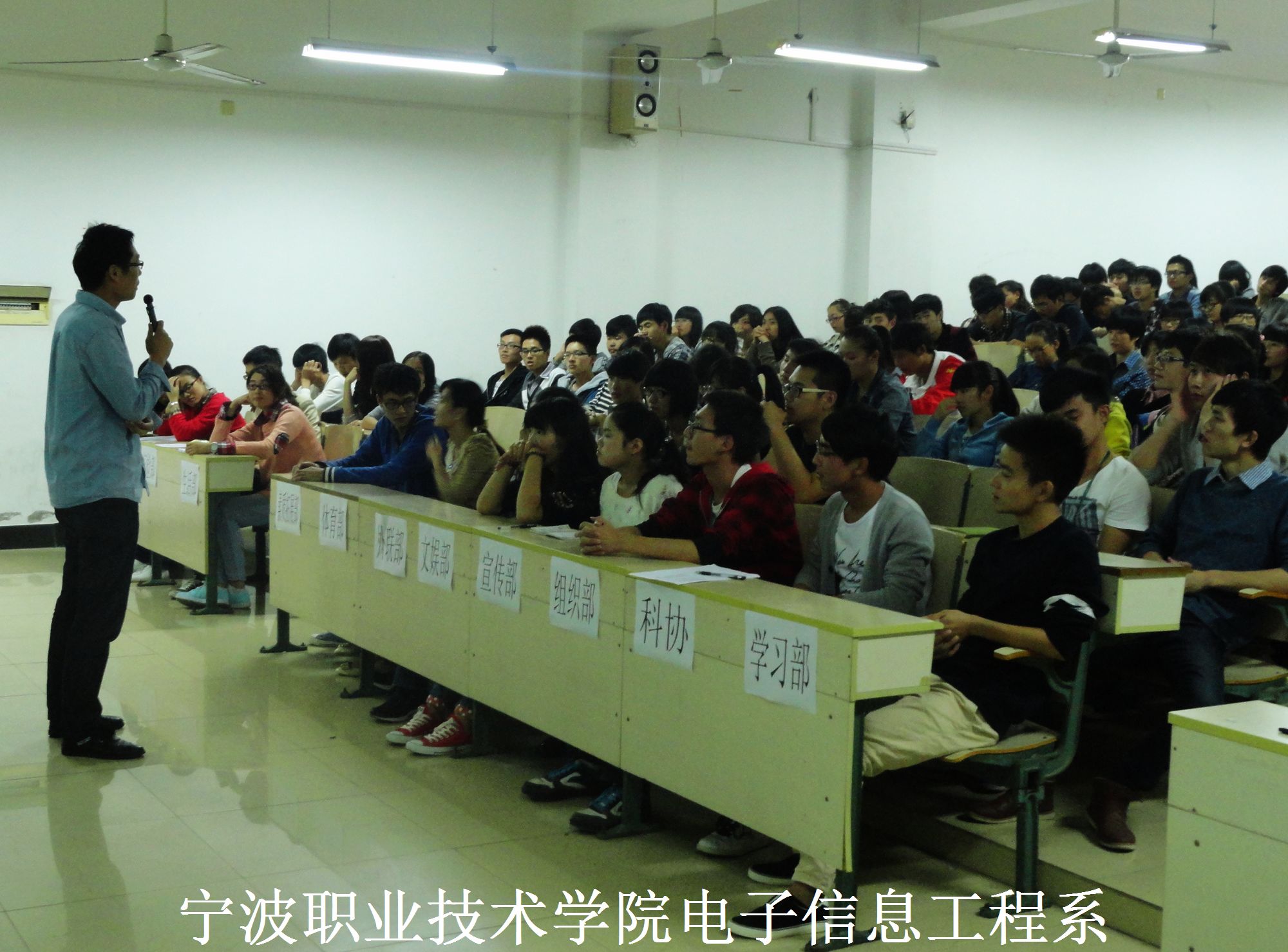2013年10月17日傍晚,我系13届学生会全体新干事在精技楼401阶梯教室参加了系团学助理与新生干事见面会。本次见面会邀请了我系辅导员刘利峰、胡国伟以及陈洁琼三位老师。