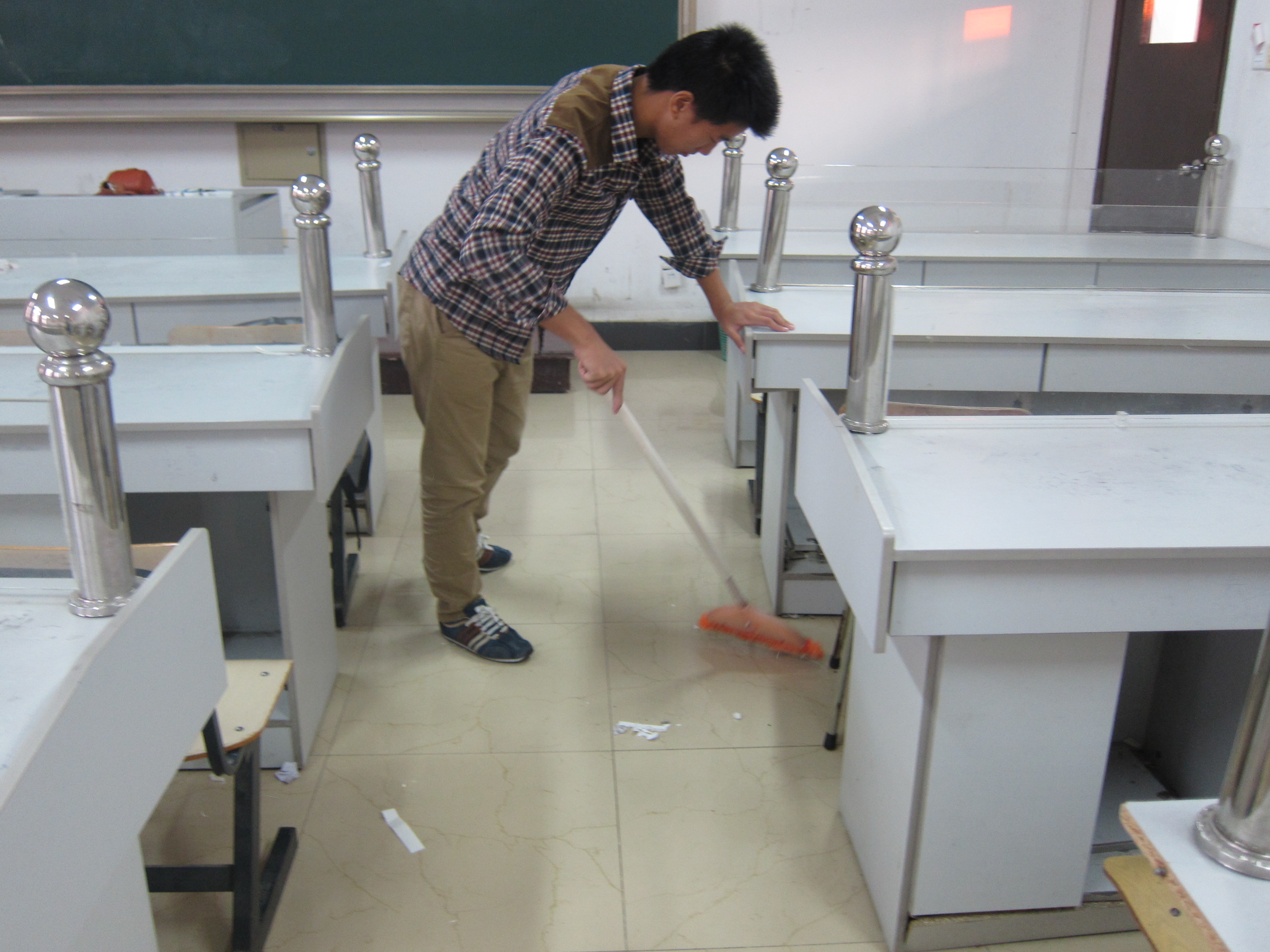 图为:学员正在扫地