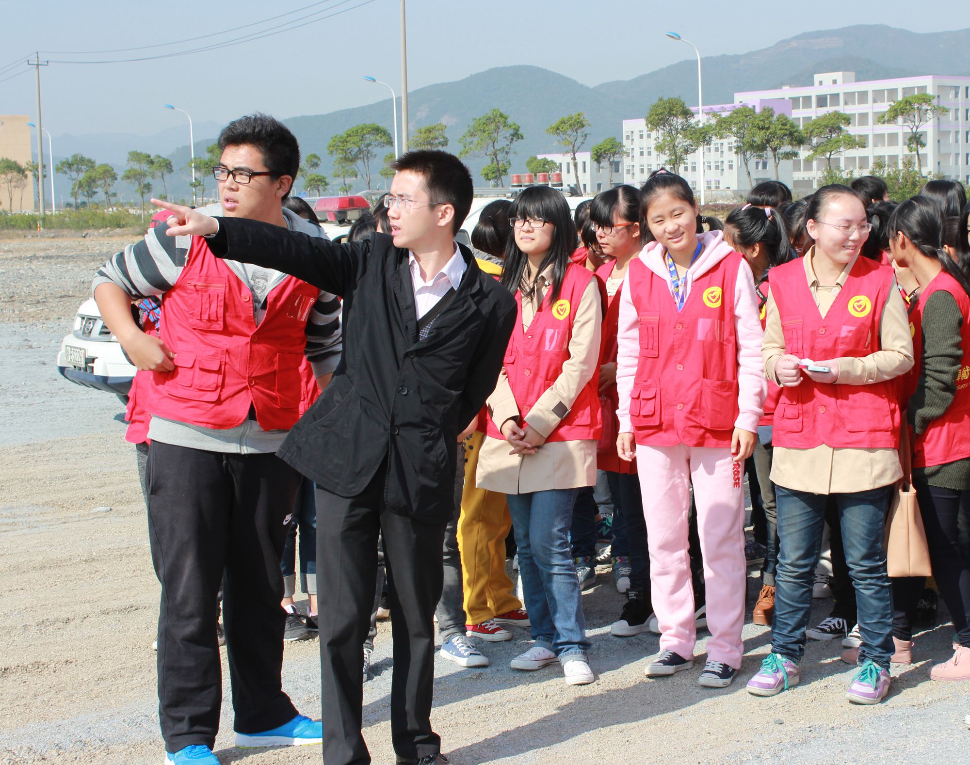 早上8点20分,电子信息工程系的志愿者准时出发。据了解,我系志愿者在此次比赛中主要负责B区停车场的交通指挥管理。在组委会工作人员介绍下,同学们了解到B区是车流量最大的区域,预计B区停车场将停下1500多辆汽车,所以负责此片区域的志愿者工作量是将非常大。此外,组委会工作人员还告诉志愿者,在停车时,应告知驾驶员让其车头朝外,引导车辆从停车场最里面停至最外面。此外,组委会工作人员还告诉志愿者在比赛当天可能出现的各种情况及处理与解决的方法。