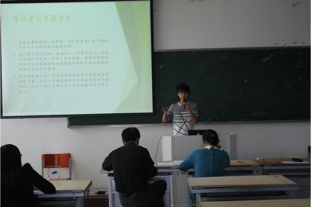 各班级负责人经过认真筹备,早已胸有成竹。会上,同学们以PPT形式向评委们展示了班级的项目,既有详实的文字内容介绍,又有具体、直观的项目开展工作的照片展示。精美的PPT,加上生动的旁白,配上动听的背景音乐,无不体现我院同学的精彩创意和奋发进取的精神信念及学院的特色。