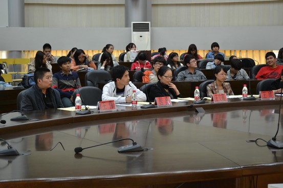 2013年11月6日中午,由国贸系团委办公室主办,国商3122班协办的国际商贸系第一届汉字英雄汇总决赛在国贸楼国际会议厅举办。国贸系团委书记王欣老师,宁波职业技术学院档案室王文霞老师,宁波职业技术学院学报编辑部编辑程勇老师,国贸系辅导员王伟老师担任本次决赛的评委。图为:出席本次决赛的评委老师