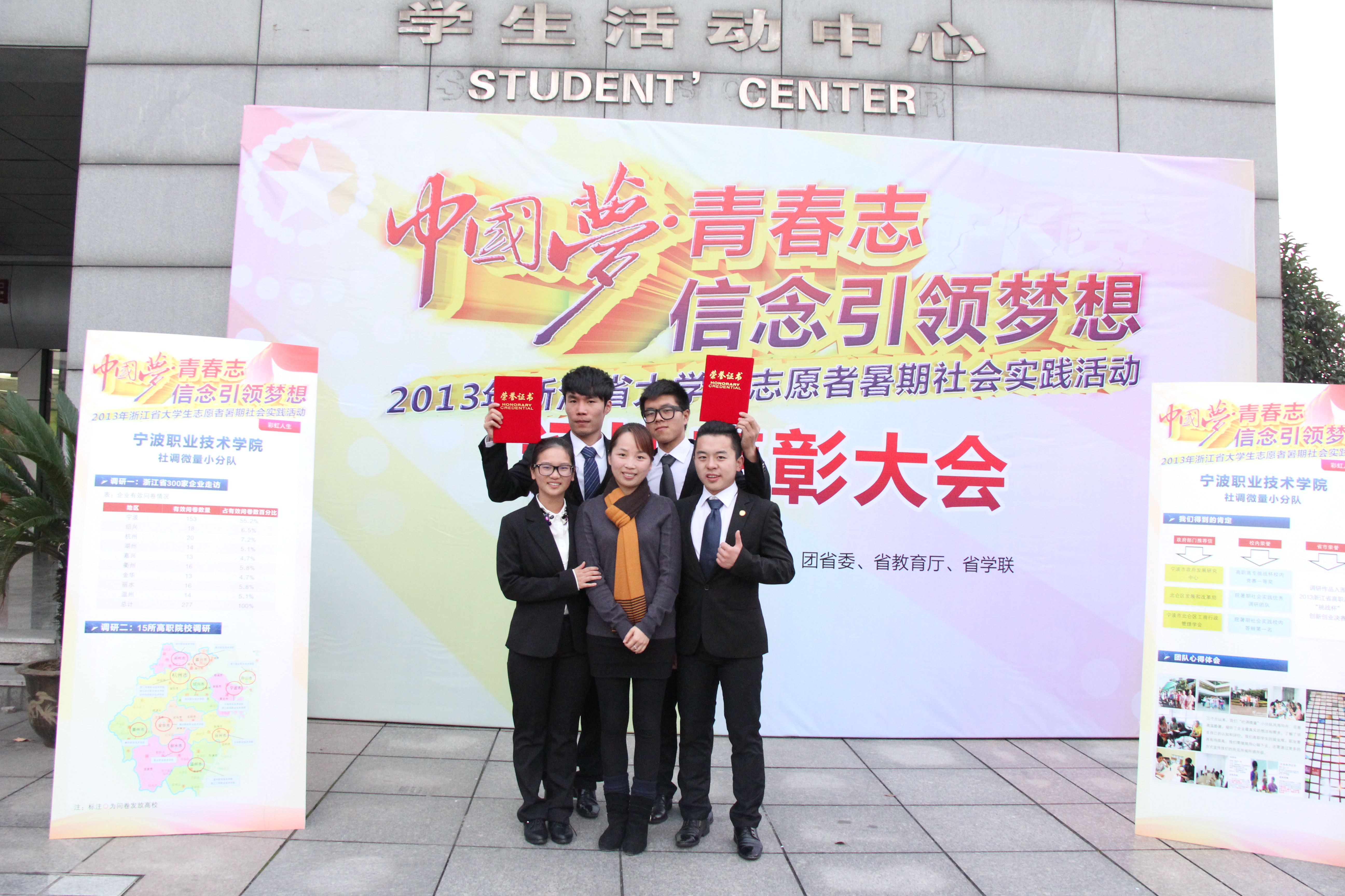 实践激扬青春志,奋斗成就中国梦。11月16日,由省委宣传部、省文明办、团省委、省教育厅、省学联共同主办的“中国梦•青春志,信念引领梦想”2013年浙江省大学生志愿者暑期社会实践评比表彰大会在浙江工商大学落下帷幕。