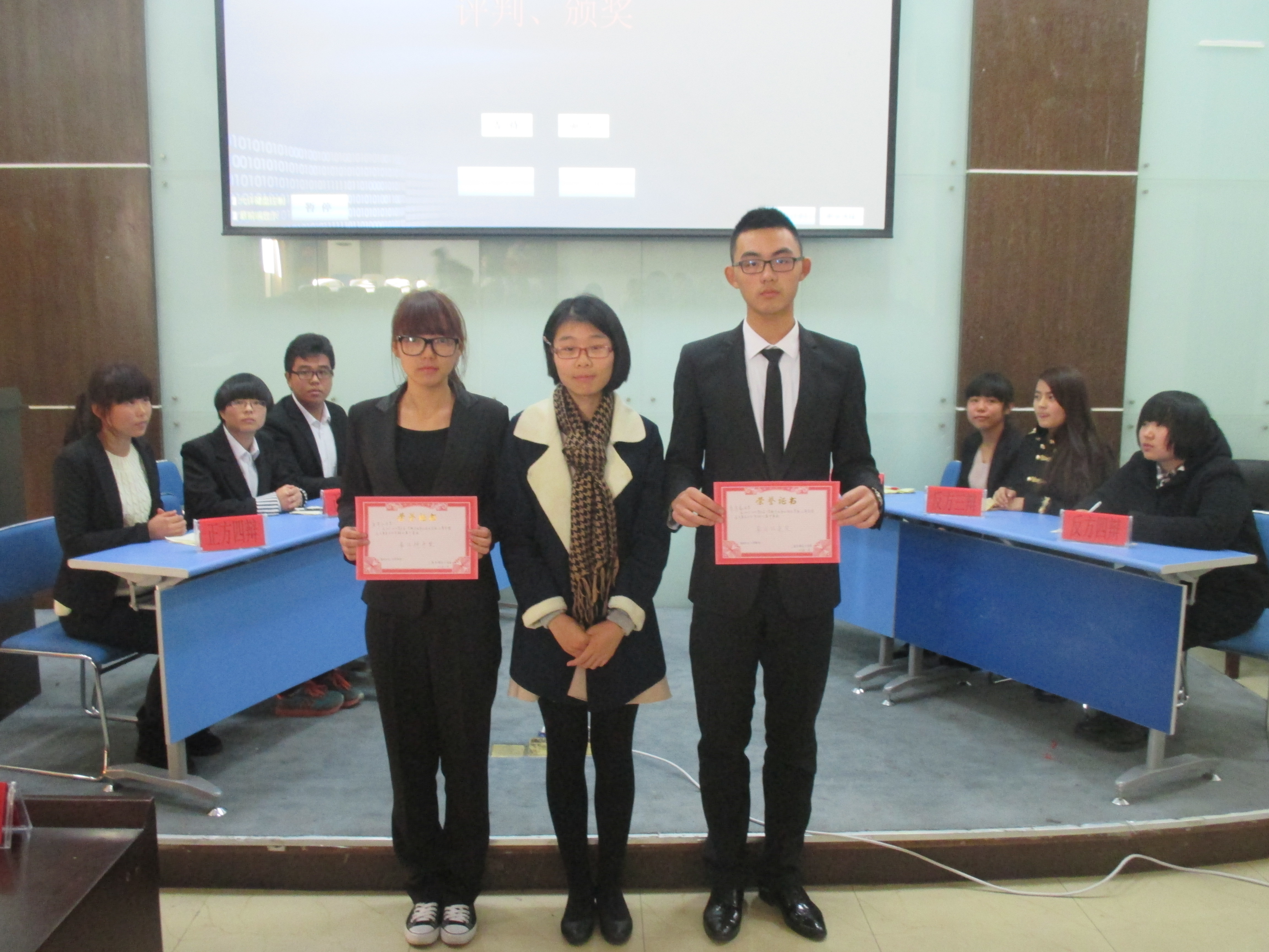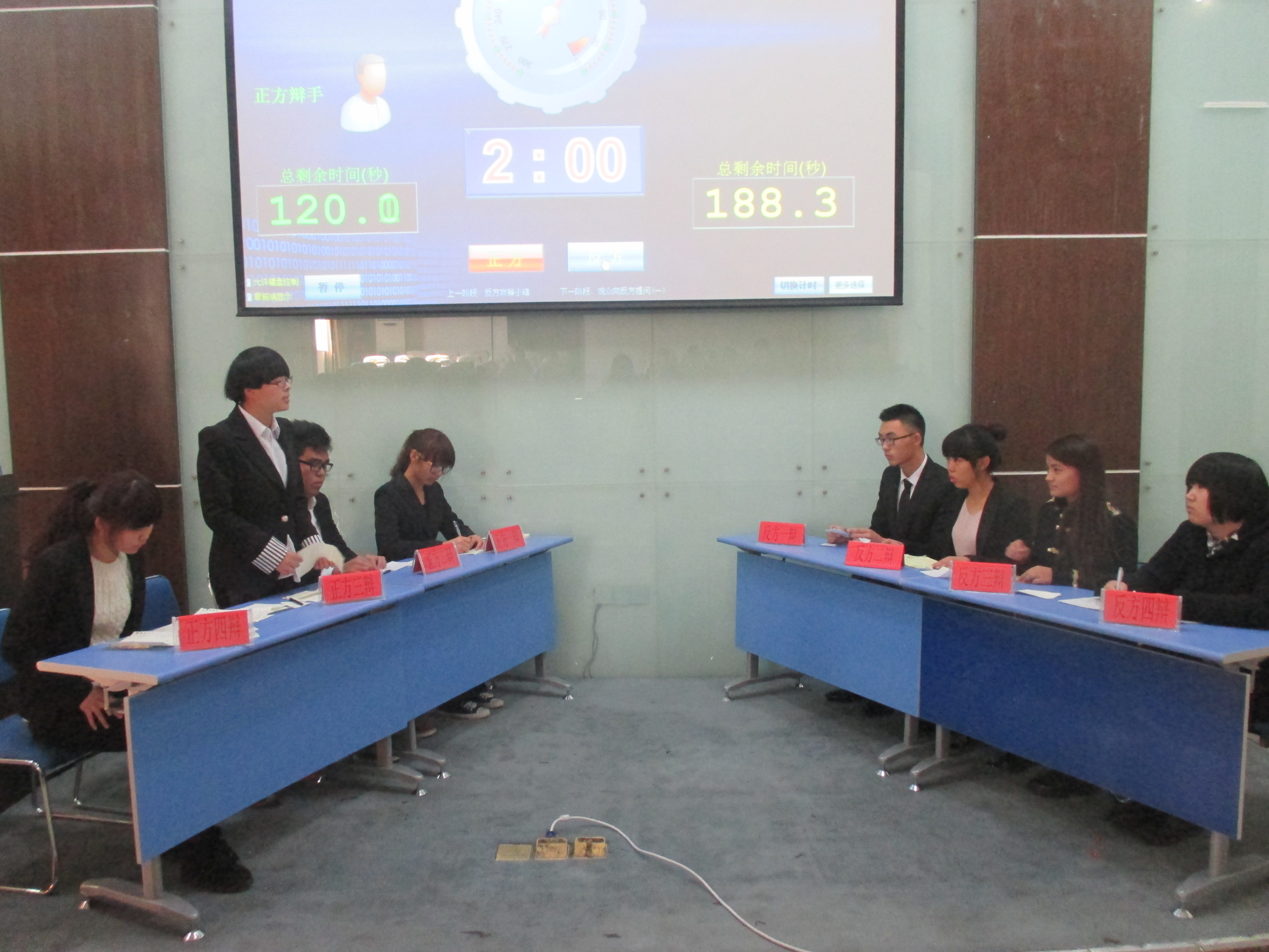 2013年11月28日12:30分在明德楼105会议室,工商管理系之志愿者文化节辩论赛决赛正式拉开了帷幕。担任这次比赛的评委有,工商管理系党总支副书记沃意琳,工商管理系团委老师林珊帅,工商管理系团委学生会主席助理汪涛等。本次辩题是“志愿服务的常态化更有赖于政府的积极引导还是民众的积极参与”。正方“we are young”队的观点是更有赖于政府的积极引导,则反方“千机辩”队的观点是更有赖于民众的积极参与。 这次比赛由立论陈词、攻辩阶段、攻辨小结、自由辩和总结陈词五个环节组成。比赛过程中八位辩手旁征博引妙语连珠,结合理论与现实充分论证了各自的观点。在自由辩论阶段时正反方各掷一词,争锋相对,正方一辩唐华飞同学与反方一辩单宇豪同学一番激烈的唇枪舌战,使底下观众按耐不住心底的澎湃,掌声连连。比赛持续升温,呈现出了一场精彩绝伦的辩论赛。在比赛如火如荼的时候,沃老师和林老师对选手们提出了辩论过程中存在的一些问题,同时也对本次辩论赛的开展和场上辩手的精彩表现给予了高度评价。