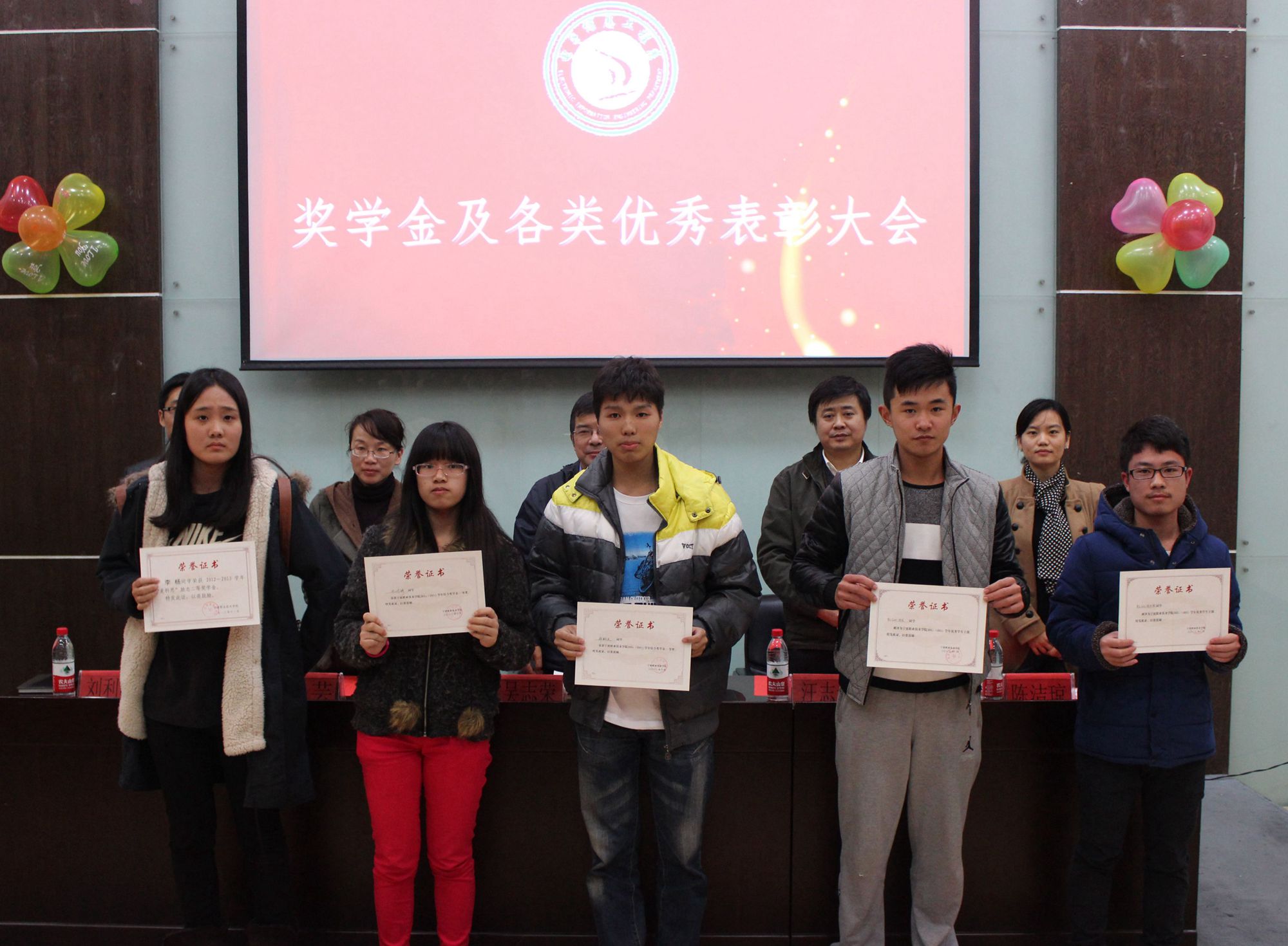 2013年12月5日中午12点30分,电子信息工程系在明德楼105教室举行2012-2013学年奖学金及各类优秀表彰大会。参加表彰大会的有系主任吴志荣教授、副主任汪志达老师、办公室主任翁芸老师、系辅导员刘利峰老师和辅导员陈洁琼老师。