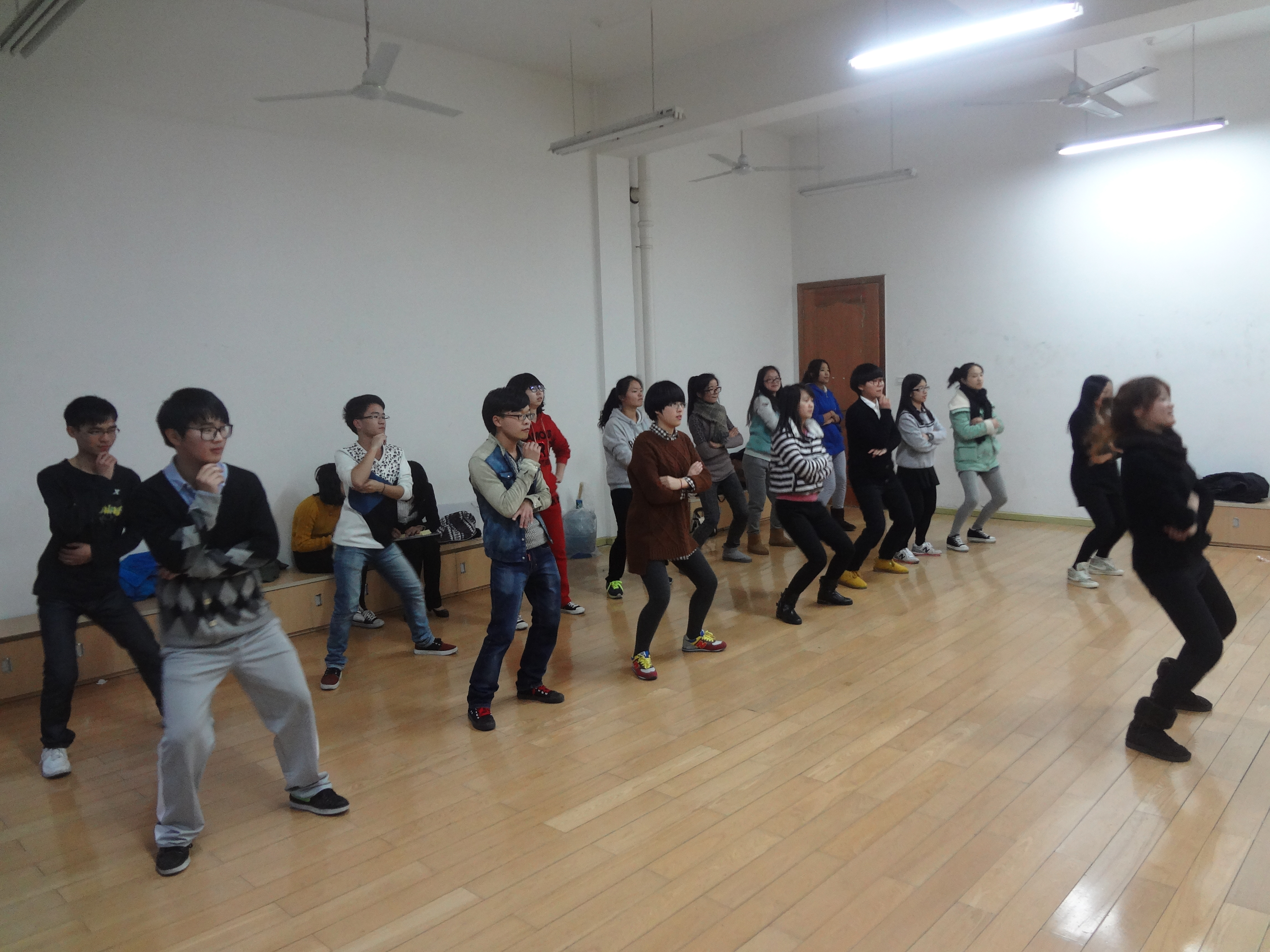 12月12日下午4点参演舞蹈《Gentleman》的24位学生会代表及舞蹈队涂建婷同学在舞房集合排练。舞蹈筹备只有短短两周的时间。两周:选舞、学舞、排舞、成型和动作的再协调磨合必须全部完成。队员对舞蹈的不熟悉,晚会的开始又迫在眉睫,让整个训练过程显得异常紧张。队员们都第一次接触舞蹈,只能一步步地跟学。因此他们就只能反复看视频学习,记住每一个动作,每一个细节。刚开始,无数次的左右走步、无数次的跳跃坐下,体操房痛呼声跌宕起伏、不绝于耳。但他们仍坚持艰苦的训练,依然毫不犹豫的下跪,干净利落的跳坐。白天舞队队员要上课学习,晚上又要排练。学习加上每天几乎2个小时的强度训练, 让他们辛苦不堪,但他们仍然坚持了下来。
