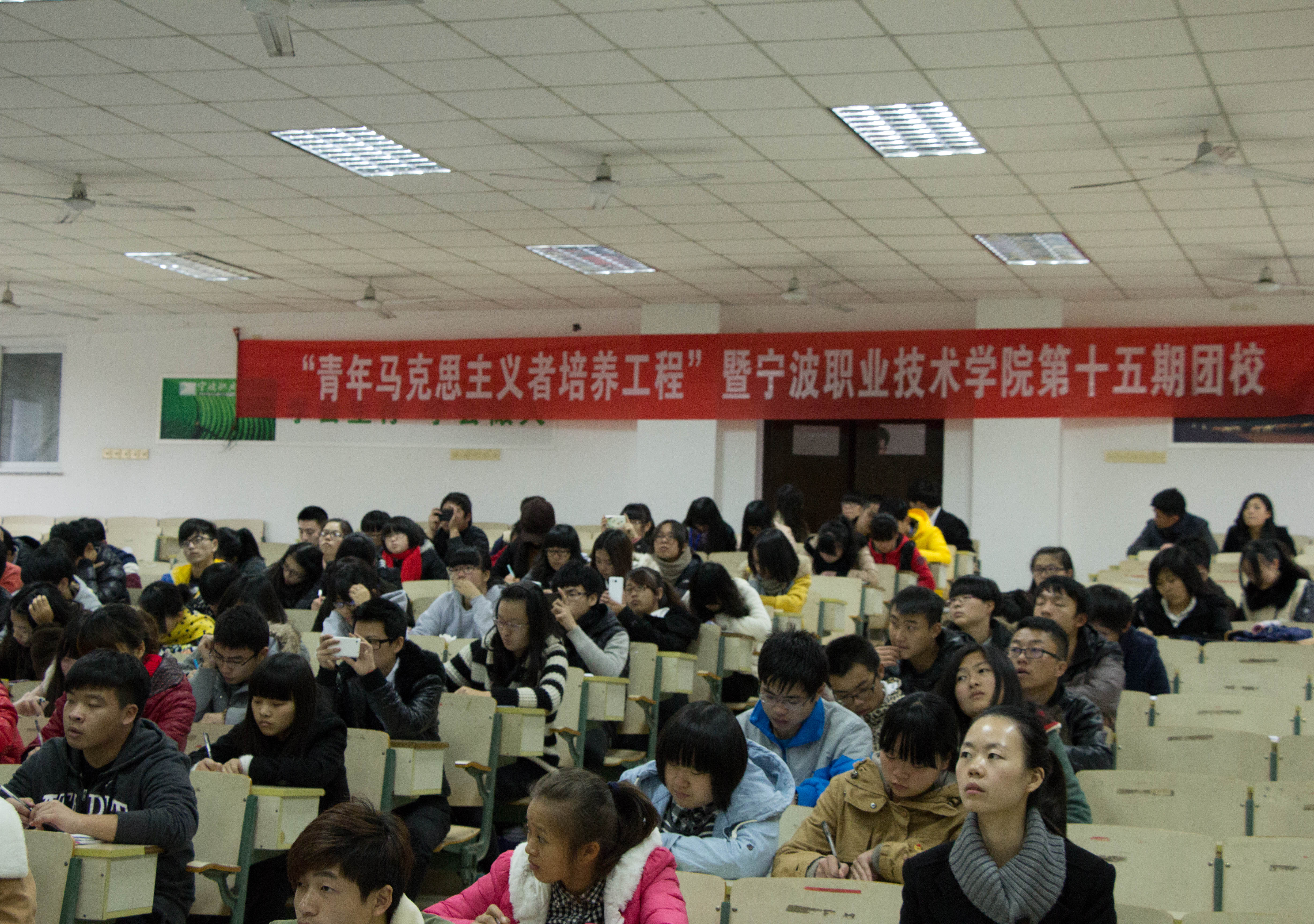 2013年12月12日,以“团队文化与执行力”为主题的“青年马克思主义者培养工程”暨宁波职业技术学院第十五期第六次团校培训在宁波职业技术学院的东校区精技楼504召开。党总支副书记裘广宇担任此次主讲人,团委书记励宁老师观看了此次讲座。