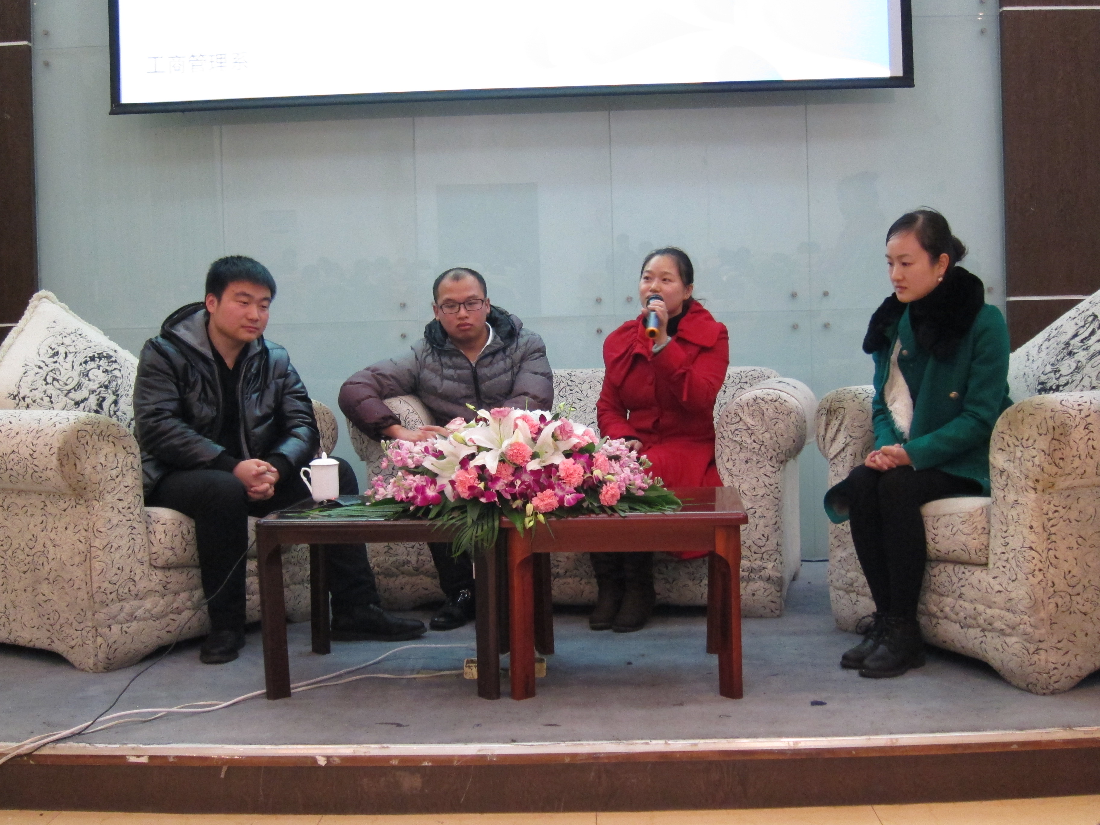 2013年12月16日晚6点,由工商管理系团委承办的第88期《宁职院有约》访谈在明德楼105会议室隆重举行。本次访谈以“那些年,学生干部的事儿”为主题,出席此次节目的领导有学院学工部部长张定华老师,学院团委副书记赖敏雅老师,工商管理系主任周亚老师,工商管理系党总支副书记沃意琳老师等多位老师。本次访谈特别邀请了工商管理系已毕业的两位优秀学生干部,他们分别是骆海滨和陈忠,和在座各位畅谈了在校学习、顶岗实习以及工作中的各种酸甜苦辣。
