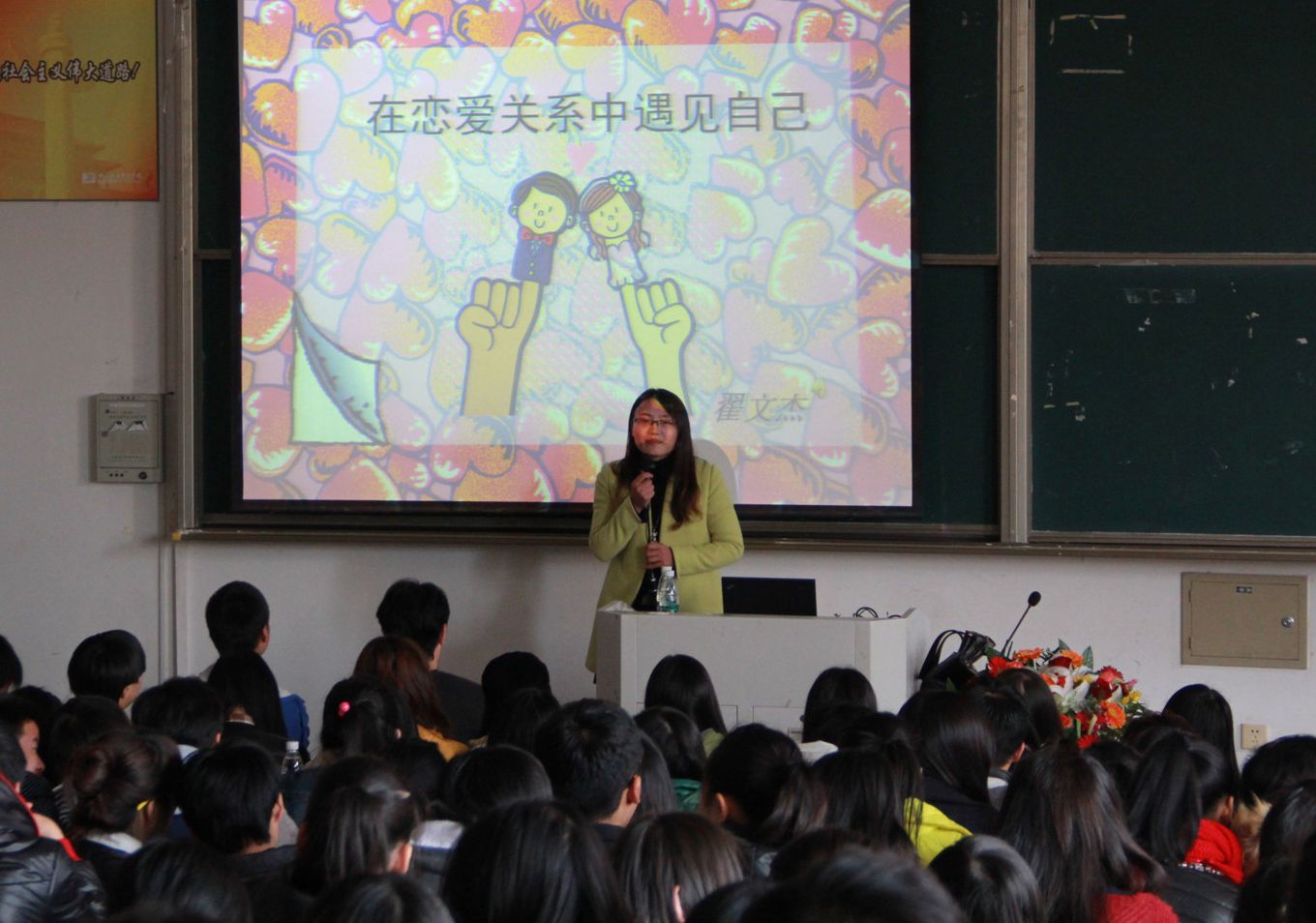 2013年12月14日下午1点30分,宁波职业技术学院心理协会在明德楼103教室举办了《在爱情的关系里遇见自己》心理讲座,此次讲座邀请了海曙区大学生心理健康老师翟文杰。讲座旨在帮助大学生树立正确的爱情观,并为大家解决爱情方面的问题。