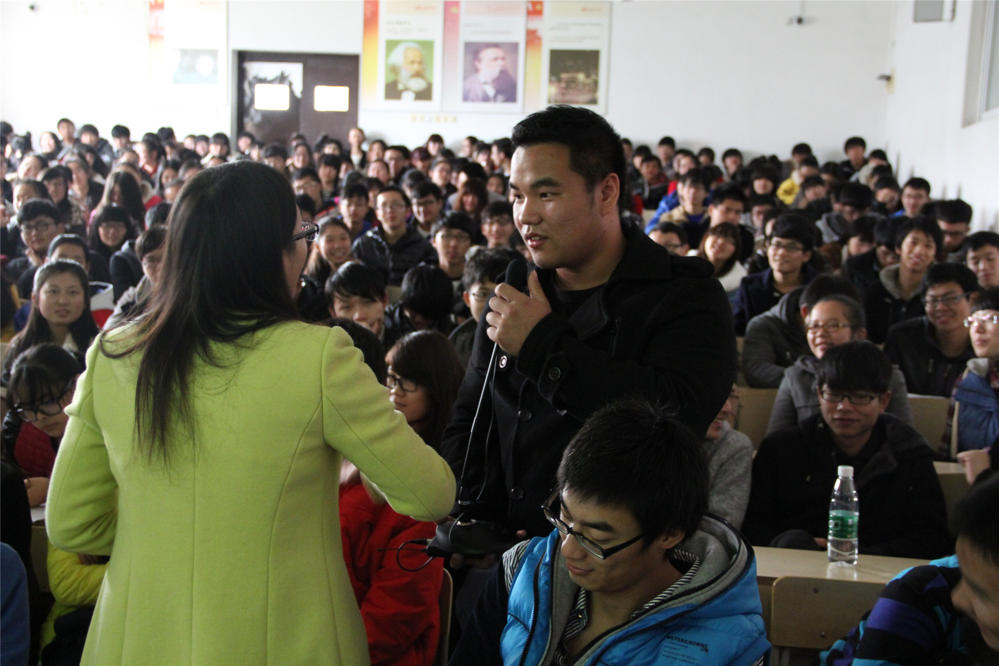 接着,翟文杰老师又指出大学恋爱的类型以及性别差异对爱情的影响,引起了在场同学对爱情的多方面思考,翟文杰老师说:“爱情是纯洁的、高尚的,需要双方相互了解,爱情不一定是要用共同的理解、奋斗目标和相同的人生观、价值观来维系。”此后,老师和同学们又深入探讨了如何确定恋爱关系,如何在爱情中与对方相处,如何在恋爱关系中坚持爱情信仰等问题,又通过现场互动环节演绎情侣在爱情中的相处模式。