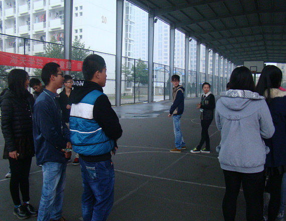 在活动中,也有个别的学生干事迟到了,但是没迟到的干事们也陪他们一起受罚,让干事们体会到了一个团体患难与共的精神。