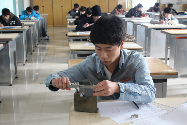 图为:选手们在认真测量零件