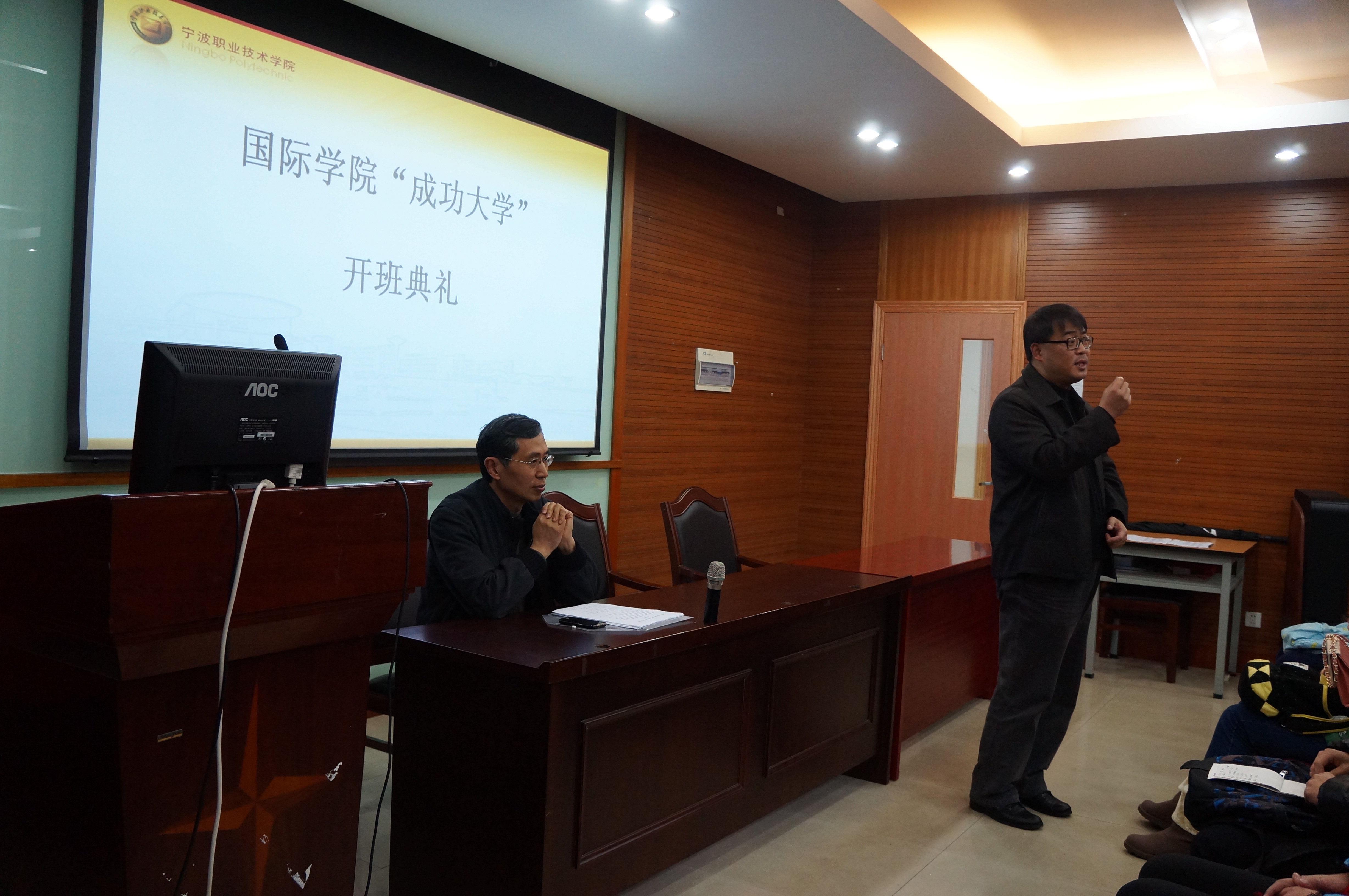 2013年12月19日,宁波职业技术学院国际学院第三期“成功大学”开班仪式在国际学院102报告厅举行。宁波职业技术学院党委副书记邵坚刚老师、国际学院党总支副书记裘广宇老师、辅导员屠琳琳老师出席了本次开班仪式,仪式由屠琳琳主持。本期国际学院“成功大学”由裘广宇任班主任徐俊杰任副班主任、屠琳琳任班长。