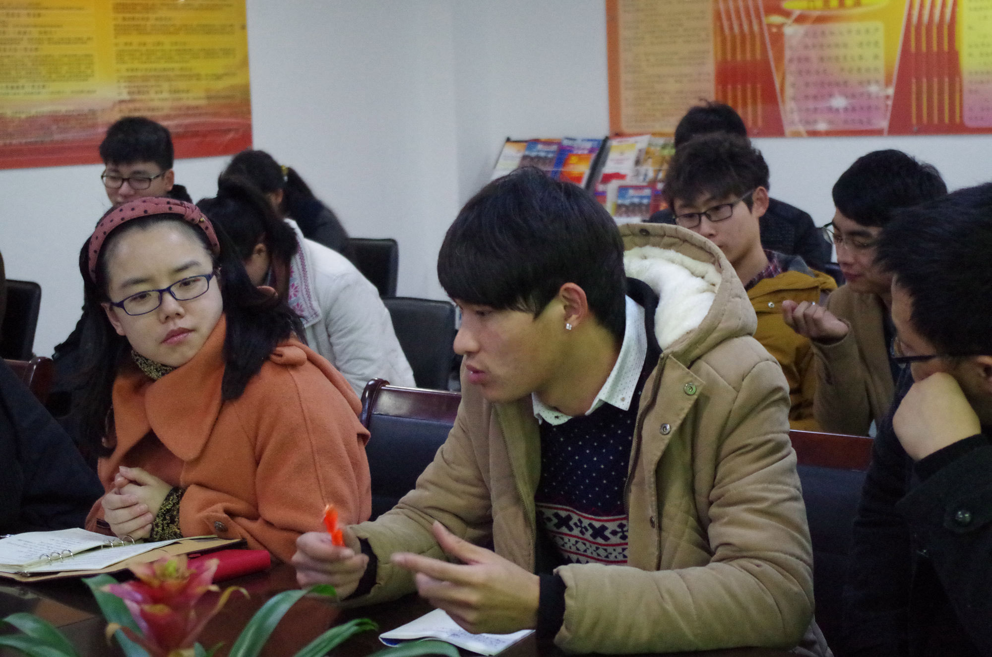 陈宇老师在布置完各项工作后补充道:“各部门部长助理对此还有没有疑问或者不懂的地方?”。来自志愿者部的部长助理夏威栋就“义工队”问题向陈宇老师提问:“因为其他系都已经成立义工大队,以现在情况看来我系有这个需求成立义工大队,但是不确定到时候的仪式是从简还是隆重点?”陈宇老师回答说:“确定要成立义工大队,可以参照当初成立“科协”时的仪式,成立“义工大队”时一定要通知到位,确保每个班级的班长团支书能通知到位。”
