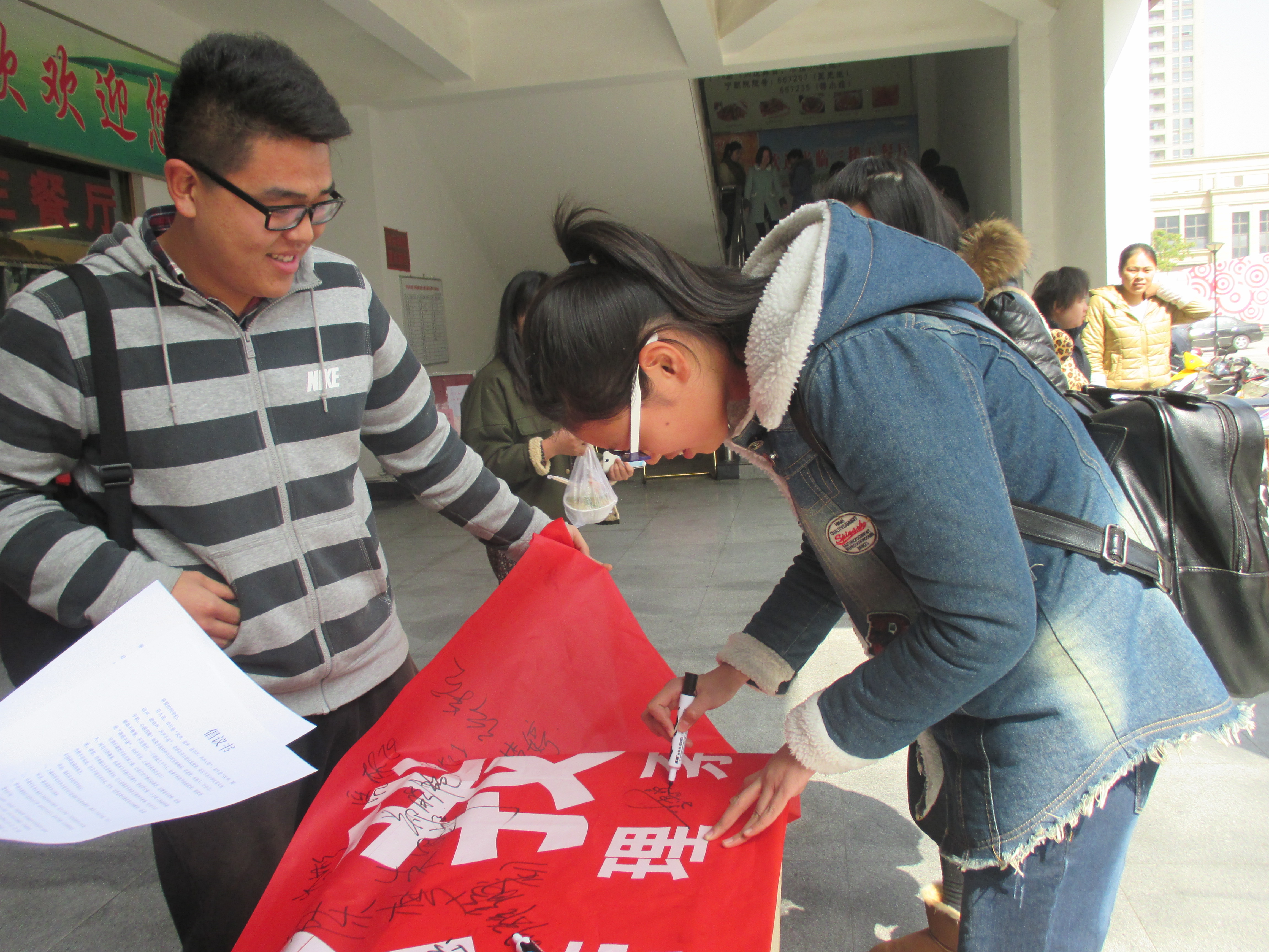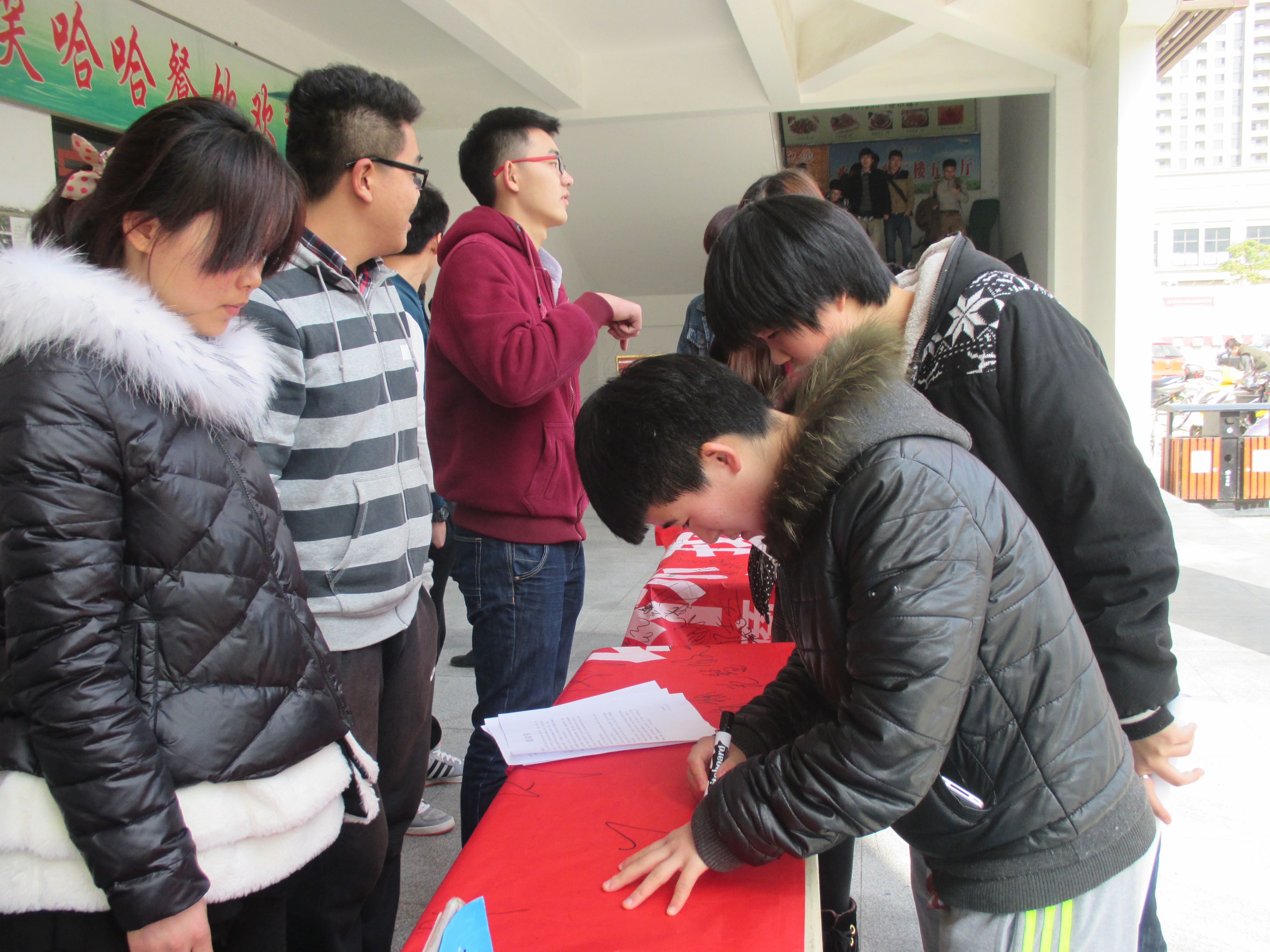 图为:同学们积极参加签名活动