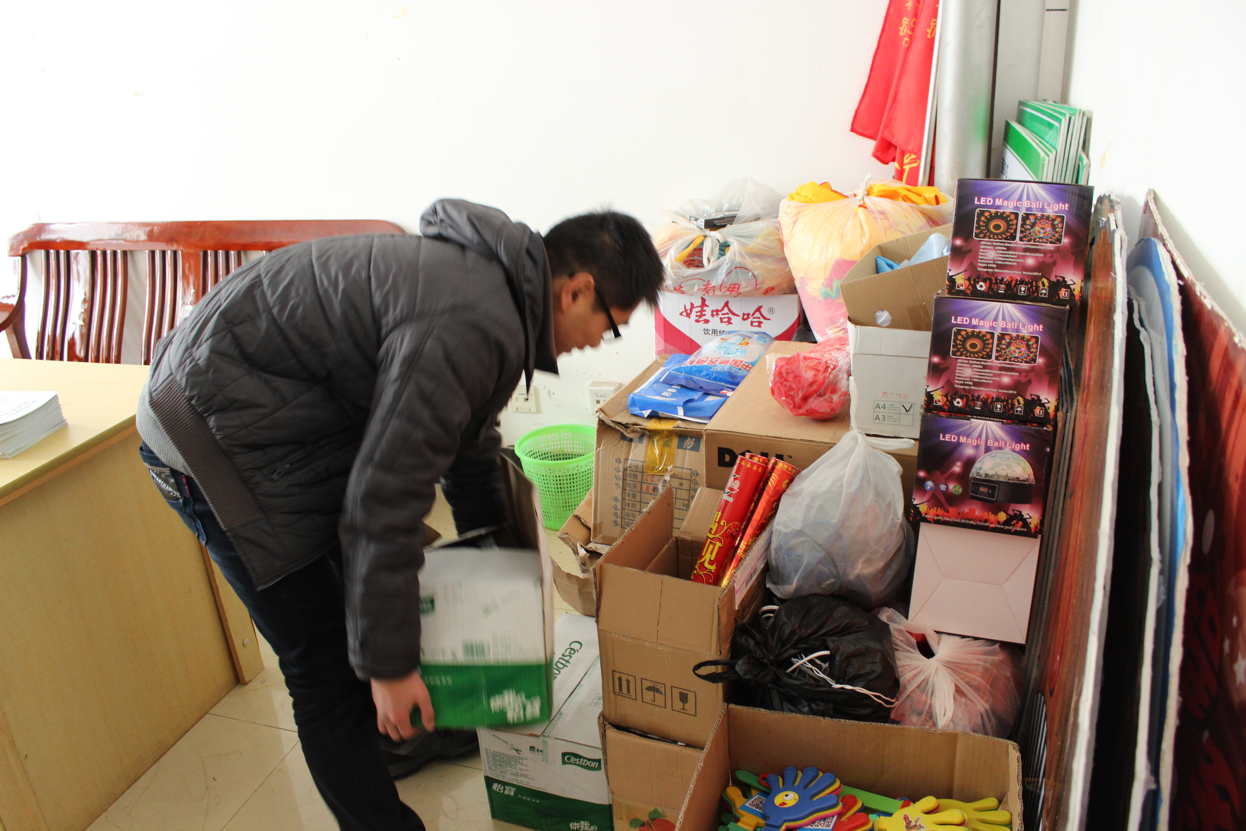 406教室为我系学生会办公室,室内摆放物品为平时做活动时所使用的彩灯、小礼品、冷烟火、电缆等。在各部门部长助理到齐后,主席助理赵涛同学开始给各部门助理分配此次清扫整理活动具体工作。在知道自己分配到的清理工作以后,各部门部长助理领取劳动工具,开始对406教室进行清理。