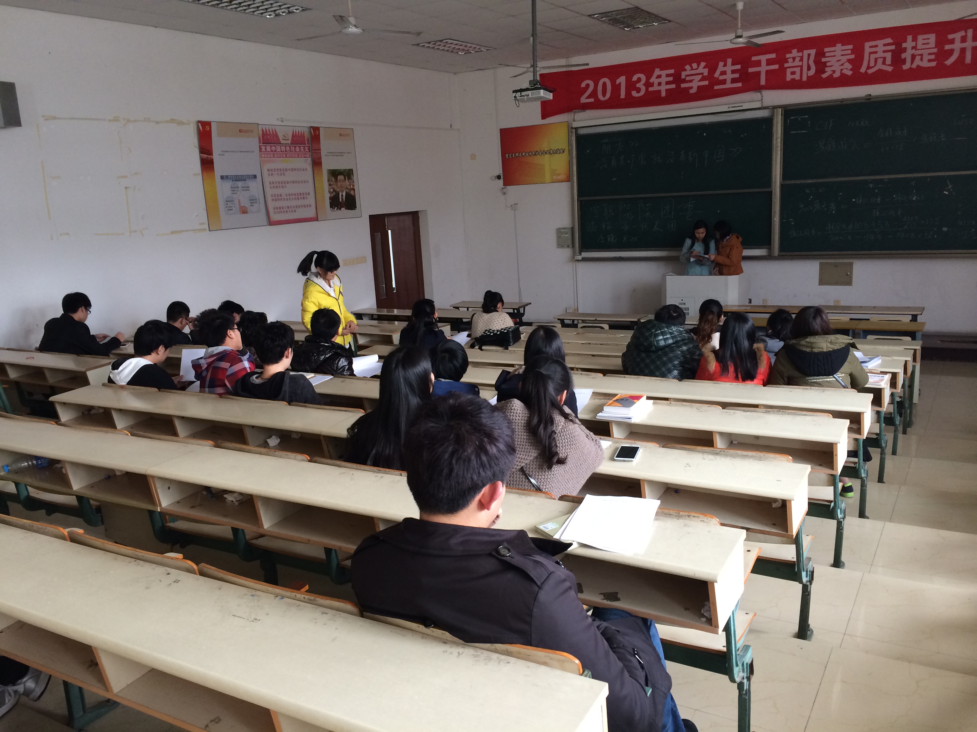 3月13号中午11点30分,在明德楼103教室,工商管理系团委学生会召开了第六次参加团员代表大会的动员大会。分团委书记游华丽老师,分团委副书记贾媛、分团委副书记助理章婧以及参加团代会的45位团员代表出席了此次会议。首先,分团委副书记贾媛给代表们分发了一本团员代表大会会议须知以及《提案》。接着,游华丽老师向代表们简单的介绍了一下团代会三天的流程和开会时所需要注意的细节,比如,各位团员代表都需关注微信宁职院院团委,相关信息将会从微信中获取,并且及时把微信昵称改成“第二代表团xxx”.由于团员代表大会是每三年举行一次的正式会议,所以每位代表都得着正装出席。其次,每位代表还需要熟悉国歌和团歌这两首歌。在拉歌环节中,我系团员代表们还将高昂演唱《没有共产党就没有新中国》和《朋友》这两首经典歌曲,希望在座的各位团员代表能够熟记歌词。
