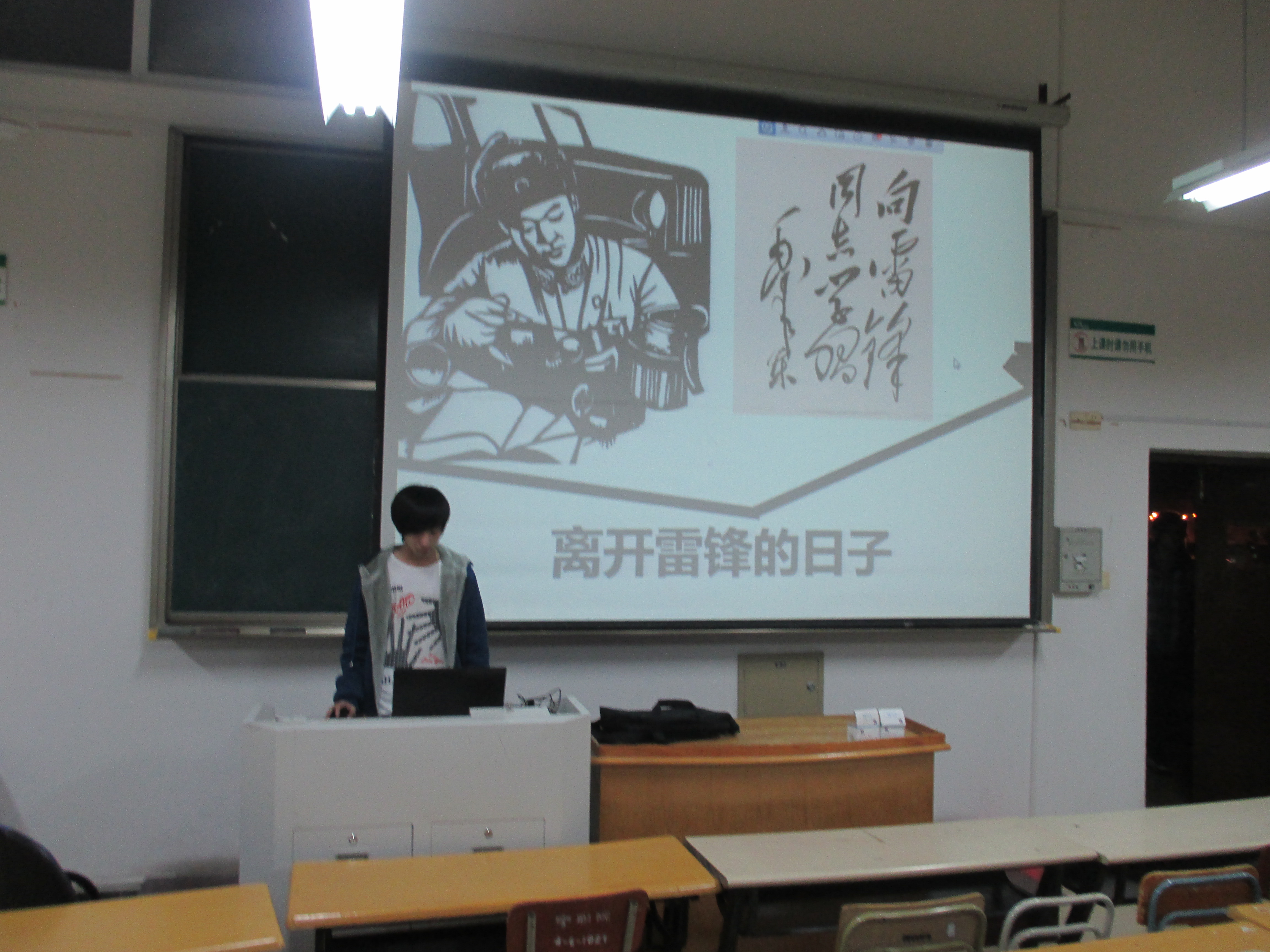为了响应学校团委关于雷锋月学雷锋活动的号召,以及向同学们宣扬无私奉献的雷锋精神,培养学生良好品质,秉承雷锋精神,2014年3月14日晚6点,工商管理系团委学生会生活部部长叶强君组织80位在明德楼307教室观看电影《离开雷锋的日子》。电影放映前,叶强君简单向同学们介绍了一下雷锋的生平事迹,强调了此次观影活动的重要意义,希望全体同学认真观看影片,从影片中得到启发,用心体会雷锋精神,树立正确的理想信念。