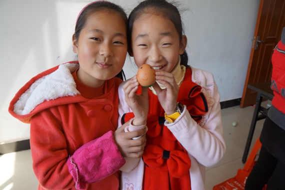 随后,我们与孩子们开展了画鸡蛋和折纸的趣味活动。一些孩子拿出自己准备的鸡蛋和彩笔,在鸡蛋壳画上他们喜欢的图案,开始DIY鸡蛋。普通的鸡蛋被孩子们描绘上了或可爱或开心或搞怪的图案,顿时变得生动起来。另外一些孩子则进行折纸活动。折纸由擅长手工艺的志愿者指导。五颜六色的普通彩纸在这些孩子的稚嫩却灵巧的手上变成了花、树、爱心等各种各样可爱的小工艺,充分彰显了孩子们无限的想象力和创造力。看着自己的作品,孩子们都很开心,并与志愿者们分享他们的想法与创造。最后,志愿者将孩子们的手工艺作品拍照留念,为今天的支教活动画上了个句号。